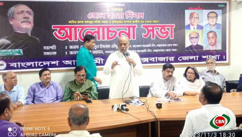 ১৫ আগস্ট স্বপরিবারে বঙ্গবন্ধুকে হত্যা ও ৩ নভেম্বরের জেলহত্যা একই সূত্রে গাঁথা উল্লেখ করে কক্সবাজার জেলা আওয়ামী লীগ নেতৃবৃন্দ বলেছেন, বিএনপি-জামায়াত হরতাল-অবরোধের নামে জনগণকে কষ্ট দিয়ে দেশে নৈরাজ্য সৃষ্টি করছে। তারা সাধারণ মানুষের উপর গুপ্ত হামলা চালিয়ে আবারও সেই ৭৫ এ ফিরে যেতে চাচ্ছে।
