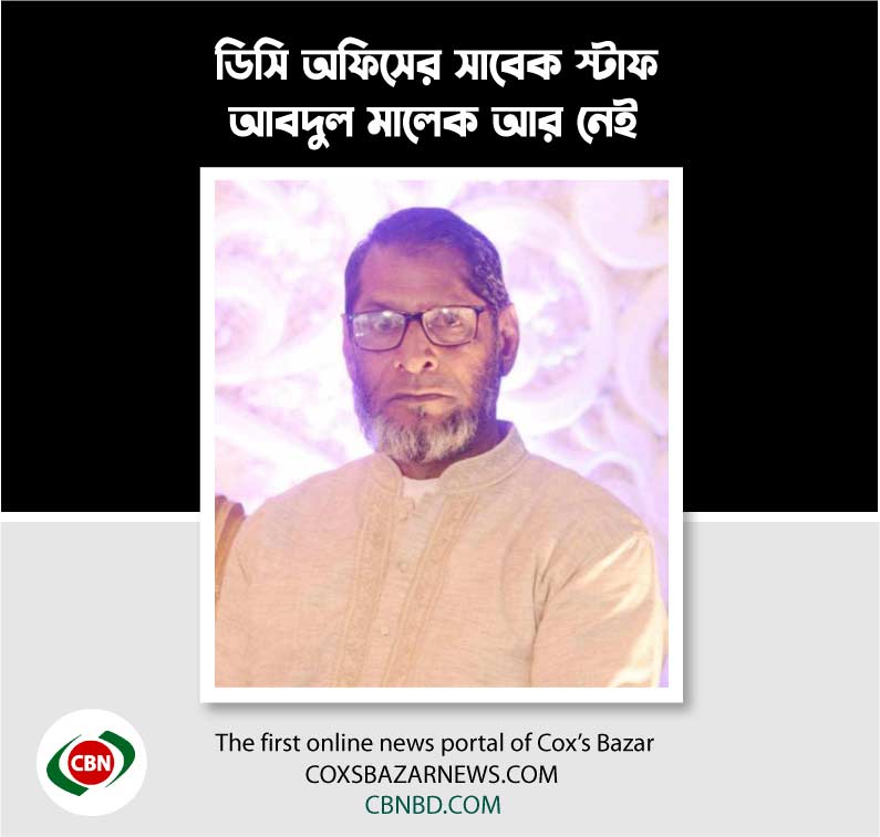 কক্সবাজার জেলা প্রশাসকের কার্যালয়ের অবসরপ্রাপ্ত স্টাফ, বিশিষ্ট সমাজকর্মী, কলাতলী নিবাসী আলহাজ্ব আবদুল মালেক আর নেই। মঙ্গলবার ১৪ নভেম্বর সকাল পৌনে ৭ টার দিকে কক্সবাজার শহরের কলাতলীস্থ নিজ বাসভবনে তিনি ইন্তেকাল করেন (ইন্নালিল্লাহি–রাজেউন)।