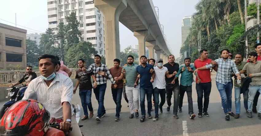 আওয়ামী সরকারের পদত্যাগ ও নির্দলীয় নিরপেক্ষ তত্ত্বাবধায়ক সরকারের ১ দফা দাবীতে বিএনপির আহুত দেশব্যাপী ২২ ও ২৩ নভেম্বর অবরোধের সমর্থনে মিছিল করেছে বাংলাদেশ জাতীয়তাবাদী ছাত্রদল ,ঢাকা বিশ্ববিদ্যালয় শাখার নেতাকর্মীরা।