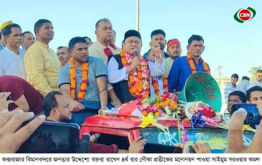 কক্সবাজার-৩ (সদর-রামু-ঈদগাঁও) আসনে বাংলাদেশ আওয়ামী লীগের চতুর্থবারের মতো নৌকা প্রতীকের মনোনীত প্রার্থী আলহাজ্ব সাইমুম সরওয়ার কমল ঢাকা থেকে কক্সবাজার পৌঁছেছেন। তিনি মঙ্গলবার (২৮ নভেম্বর) বিকালে কক্সবাজার বিমানবন্দরে পৌঁছলে কক্সবাজার পৌরসভা, সদর, ঈদগাঁও এবং রামু উপজেলার বাংলাদেশ আওয়ামী লীগ ও সহযোগী সংগঠনের নেতাকর্মী সহ হাজারো জনতা প্রিয় নেতাকে ফুলেল অভিনন্দন জানিয়ে বরণ করে নেয়।