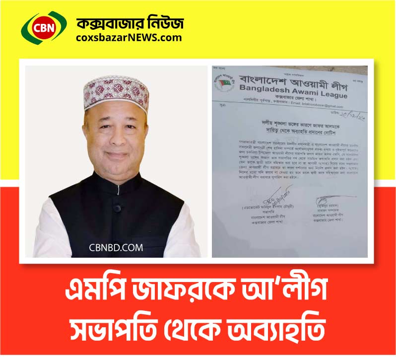 অন্যথায় জাফর আলমকে দল থেকে স্থায়ী বহিস্কারের জন্য কেন্দ্রীয় আওয়ামী লীগ বরাবরে সুপারিশ করবে কক্সবাজার জেলা আওয়ামী লীগ।