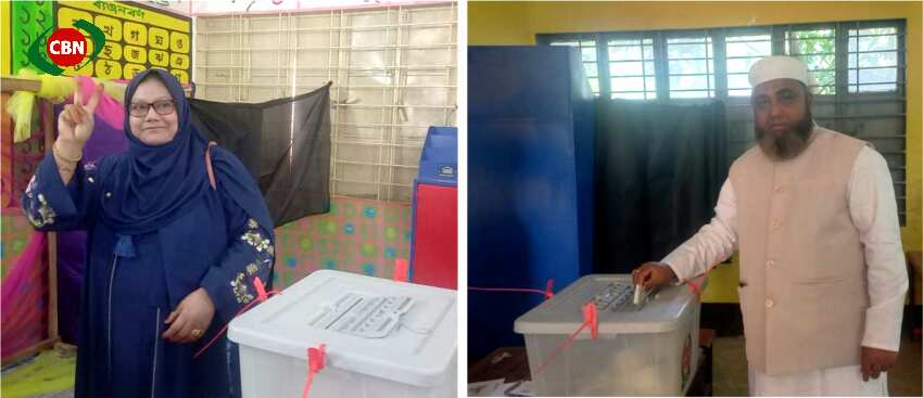 নৌকার প্রার্থী শাহীন আক্তার ও বদি দম্পতি পৌরসভার চৌধুরী পাড়া হাজী ইসলাম শাহজাহান সরকারি প্রাথমিক বিদ্যালয়ে ভোট প্রদান করেন।