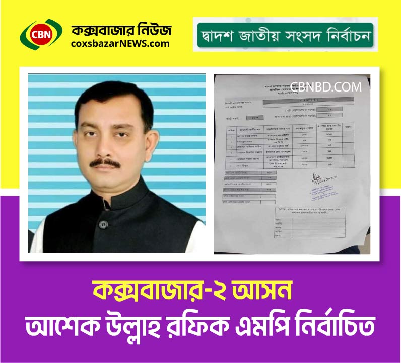 কক্সবাজার-২ (মহেশখালী-কুতুবদিয়া) আসন থেকে আবারো সংসদ সদস্য নির্বাচিত হয়েছেন শেখ হাসিনার আশিক (আশেক উল্লাহ রফিক)।