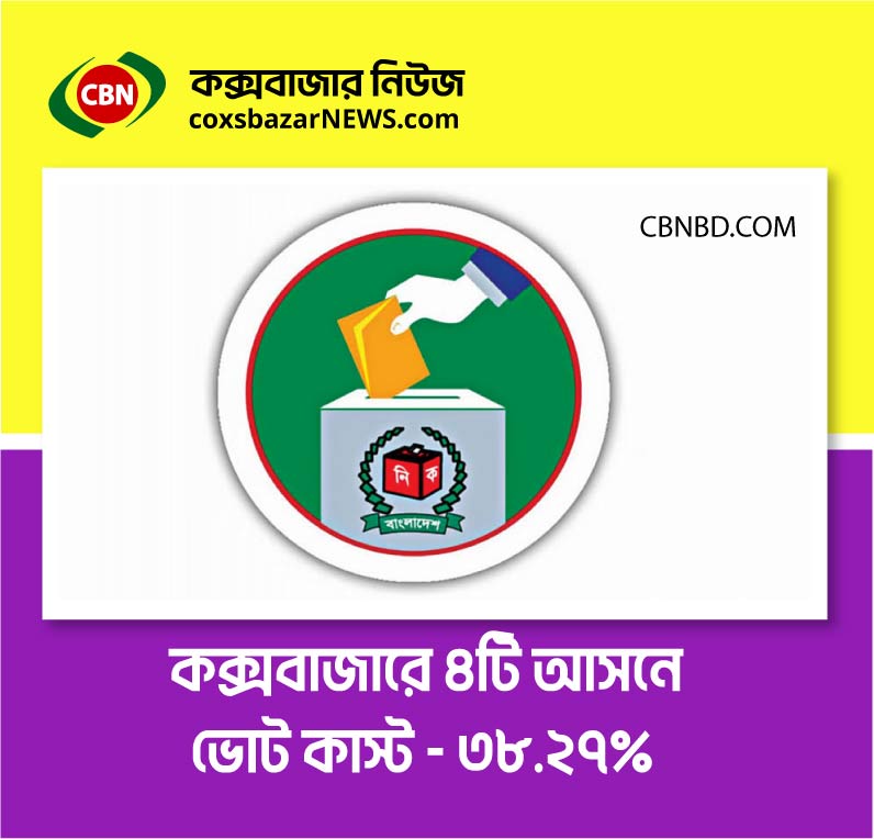 গত রোববার ৭ জানুয়ারি অনুষ্ঠিত দ্বাদশ জাতীয় সংসদ নির্বাচনে কক্সবাজার জেলার ৪টি সংসদীয় আসনে মোট ১৬৫০৯৬০ জন ভোটারের মধ্যে ৬৩১৮৩১ টি ভোট কাস্ট হয়েছে। অর্থাৎ গড়ে জেলায় ভোট কাস্ট হয়েছে মোট ভোটারের ৩৮’২৭% ভাগ। ৪টি সংসদীয় আসনে কাস্ট হওয়া ভোটের মধ্যে ৬২০৬০৯ টি বৈধ ভোট এবং ১১২২২ টি বাতিল ভোট।