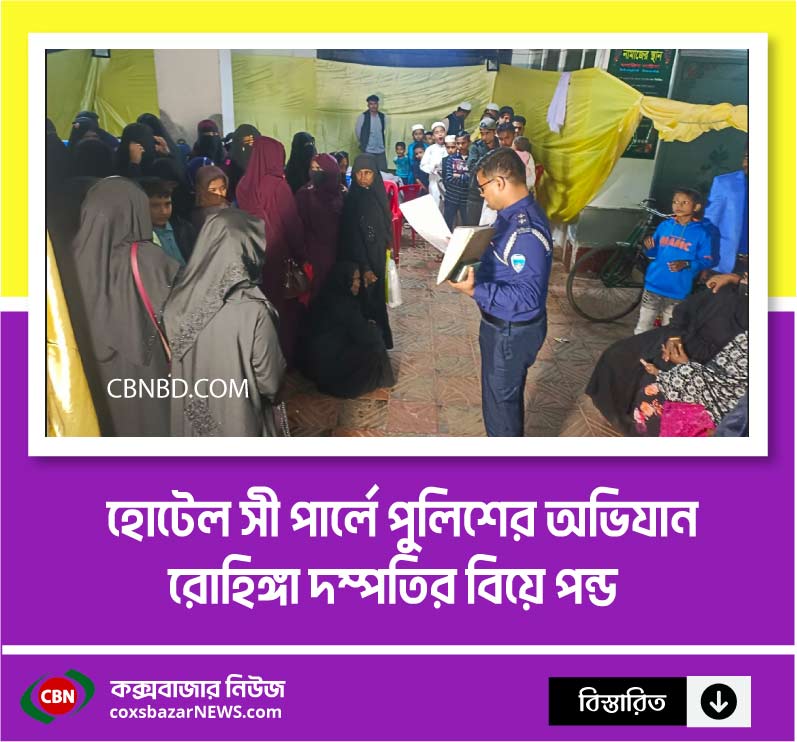 বিষয়টি নিশ্চিত করেছেন কক্সবাজার সদর মডেল থানার ওসি (অপারেশন) মো. শাকিল হাসান। তিনি বলেন, ‘রোহিঙ্গা দম্পতির বিয়ের খবর পেয়ে সী পাল হোটেলে অভিযান চালানো হয়। সেখান থেকে প্রায় ৬৩ জন রোহিঙ্গাকে আটক করা হয়। তাদের মধ্যে ৭ জন পুরুষ, ৩২ জন নারী ও ২৪ জন শিশু।