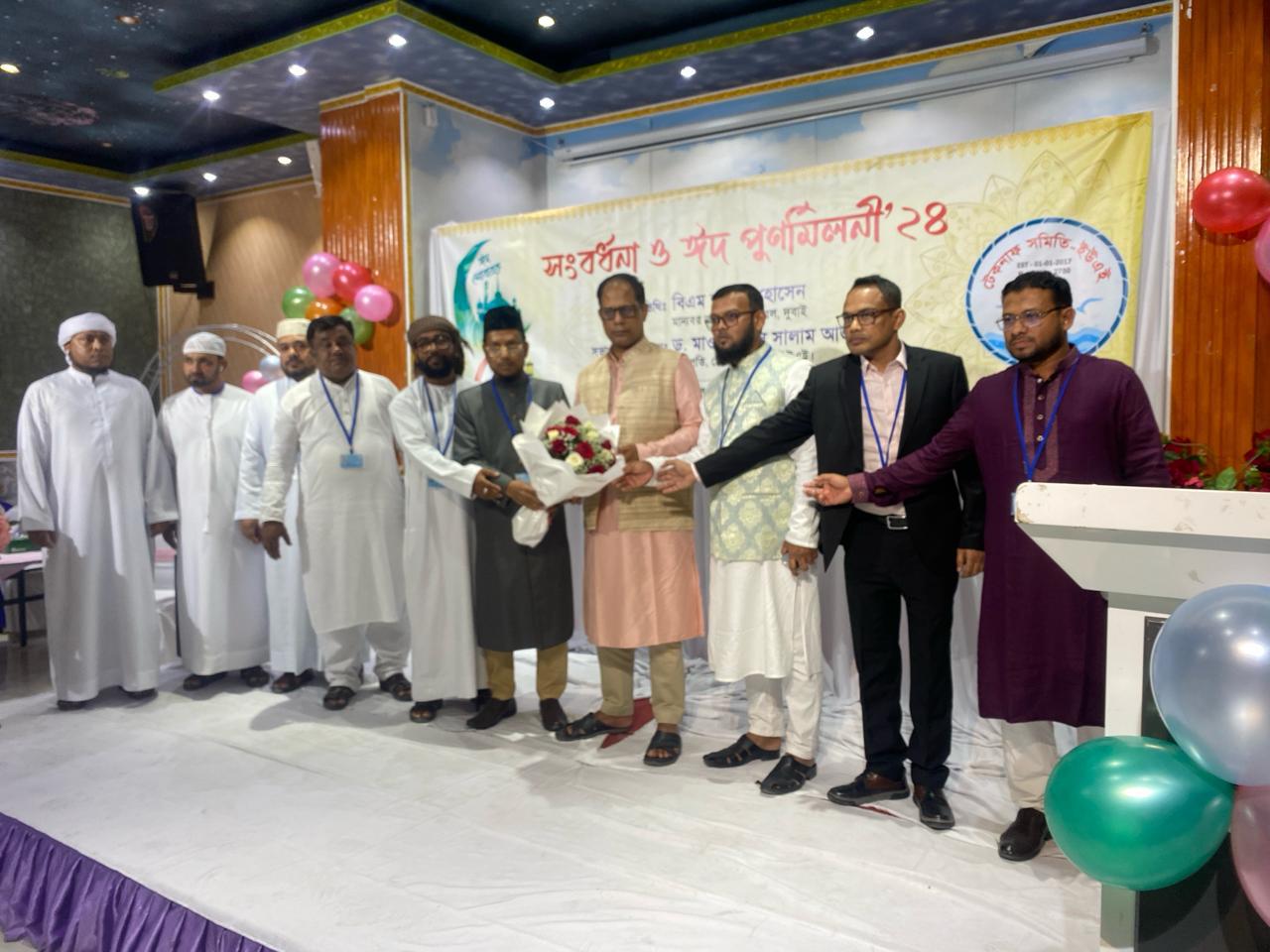সংযুক্ত আরব আমিরাতের শারজাহ নুর আল হেলাল রেস্টুরেন্টে সাধারণ সম্পাদক মুহাম্মদ শাহ জাহানের সঞ্চালনায় ও ড, মাওলানা আব্দুস সালাম আজহারির সভাপতিত্বে অনুষ্ঠিত সংবর্ধনায় বিশেষ অতিথি হিসেবে উপস্থিত ছিলেন কন্স্যুলেট লেডিস গ্রুপের সভানেত্রী মিসেস আবেদা হোসেন। বাংলাদেশ প্রেসক্লাব ইউএই’র সভাপতি শিবলী আল সাদিক, সিনিয়র সহসভাপতি মামুনুর রশিদ, সাধারণ সম্পাদক কামরুল হাসান জনি, যুগ্ন সাধারণ সম্পাদক এস এম মোদাচ্ছের শাহ, সদস্য ইঞ্জিনিয়ার আরিফ সিকদার বাপ্পি, এস এম শাফায়েত, মেহেদ রুবেল, জাসেদুল ইসলাম, ইরফানুল ইসলাম, সমিতির সহ সভাপতি রাশেদ উল্লাহ, অর্থ সম্পাদক এডভোকেট মুহাম্মদ ইদ্রিস, প্রচার সম্পাদক মা: আজিজ উল্লাহ, মাও: মুহাম্মদ লোকমান হাকিম, মুছা জাফর, ছৈয়দ আকবর, খুরশিদুল ইসলাম, হোছাইন বাদশা, হোছাইন আহমদ, সাঈদ আলমসহ অনেকে।