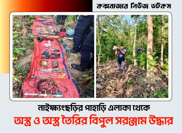 বান্দরবানের নাইক্ষ্যংছড়ির পাহাড়ী গহীন জঙ্গল সাড়াশি অভিযান চালিয়ে অস্ত্র ও অস্ত্র তৈরির বিপুল পরিমান সরঞ্জাম উদ্ধার করা হয়েছে।