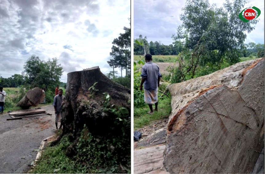 অবশেষে সেই গাছটি এবার রাতের আধাঁরে কে বা কাদের হাতে কর্তন তথা হত্যার শিকার হয়ে মাটিতে লুটিয়ে আছে।