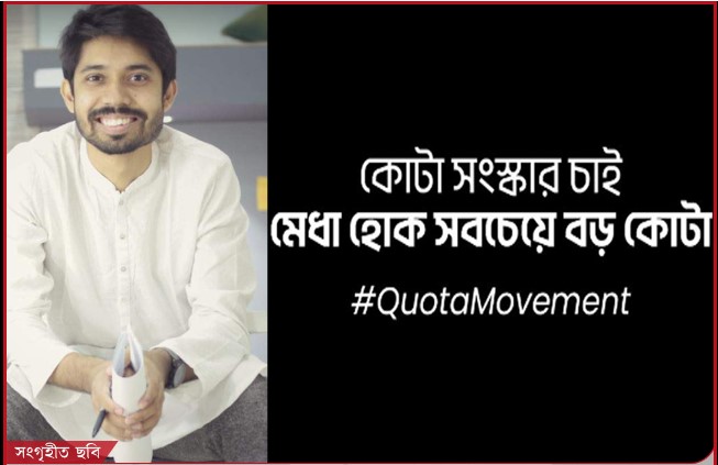 শনিবার (১৩ জুলাই) রাতে কোটা সংস্কার চেয়ে নিজের ফেসবুক পেজে পোস্ট দেন তিনি।