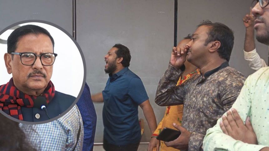 পরে সাবেক নেতাদের হট্টগোলের কারণে সংবাদ সম্মেলন শেষ না করেই সভাস্থল ত্যাগ করেন ওবায়দুল কাদের। তখন সাবেক নেতারা বিভিন্ন স্লোগান দিতে থাকেন। এ সময় আওয়ামী লীগের কার্যালয়ের নিচ তলায় ভুয়া ভুয়া স্লোগানও দেন তারা।