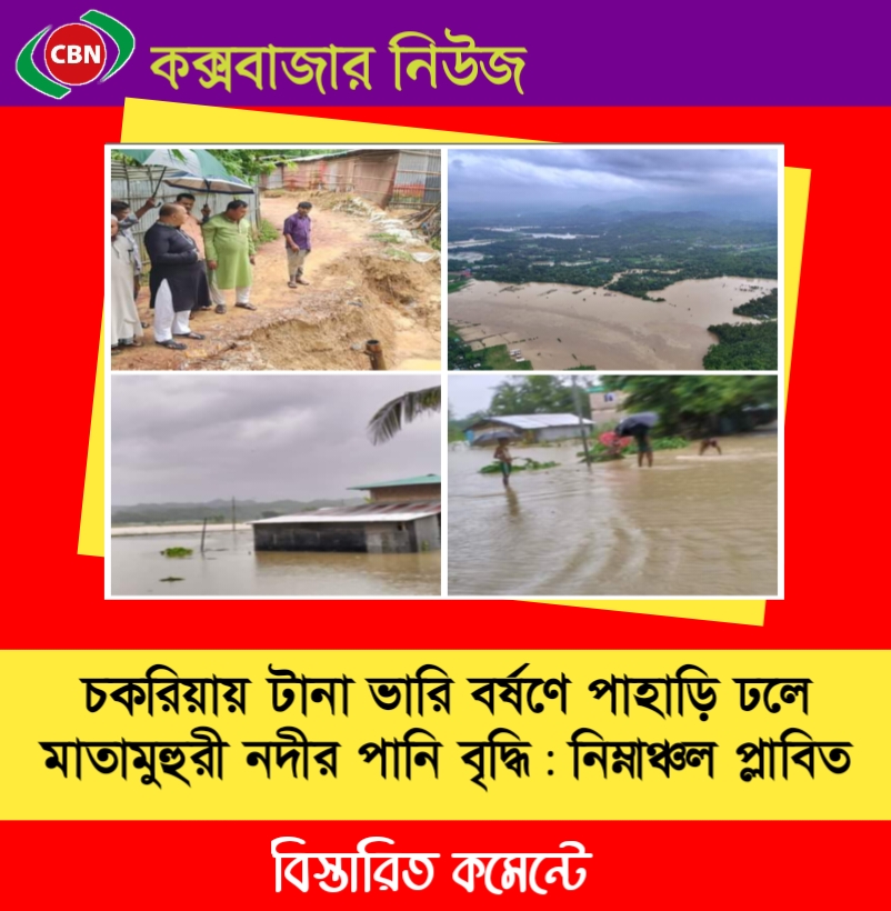 কক্সবাজারের চকরিয়ায় টানা ভারি বর্ষণে মাতামুহুরী নদীতে উজান থেকে নেমে আসা পাহাড়ি ঢলে নিম্নাঞ্চল প্লাবিত হয়ে পড়েছে। এতে পাহাড়ি ঢলে ও বৃষ্টির পানির জলাবদ্ধতার গৃহবন্দি হয়ে পড়েছে প্রায় শতাধিক পরিবার। বৃহস্পতিবার দুপুর থেকে সন্ধ্যা সাতটার দিকে মাতামুহুরী নদীর পানি হু হু করে বেড়ে যাচ্ছে। বৃষ্টিপাত অব্যাহত থাকলে নদীর পানি বিপদসীমা অতিক্রম হওয়ার সম্ভাবনা দেখা দিয়েছে। মাতামুহুরী নদীর পানি বৃদ্ধির কারণে উপজেলার কয়েকটি ইউনিয়ন ও পৌরসভার বেশকিছু নীচু এলাকা পানিতে নিমজ্জিত হয়ে পড়েছে। এতে বর্তমানে উপজেলার অন্তত বিশটি গ্রামের প্রায় পনেরো হাজার জনসাধারণ জনদুর্ভোগে পড়ে। যেভাবে বৃষ্টিপাত হচ্ছে টানা আর দু’য়েক দিন বৃষ্টিপাত অব্যাহত থাকলে বড় ধরনের ভয়াবহ বন্যার আশঙ্কা করছেন স্থানীয় জনপ্রতিনিধিরা।