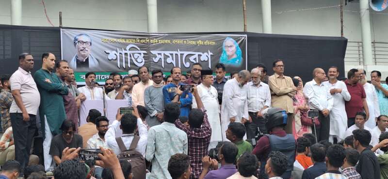 নেতৃবৃন্দ বলেন ছাত্রদের সকল দাবী মানা হয়েছে। সরকার পতনের নামে বিএনপি-জামায়াত দেশে হত্যা ,ধ্বংস ও নৈরাজ্য চালাচ্ছে এবং দেশকে গৃহযুদ্ধের দিকে ঠেলে দিতে চায়। বিএনপি, জামায়াত-শিবির জঙ্গিরা হাসাপাতালে আগুন দিয়ে, থানায় হামলা করে নীরিহ মানুষ, পুলিশ কে হত্যা করছে। রাষ্ট্রীয় সম্পদ বিনষ্ট করছে। আমরা সংঘাত চাই না। শান্তি চাই। সকলকে দ্বায়িত্বশীল আচরণ করতে হবে।