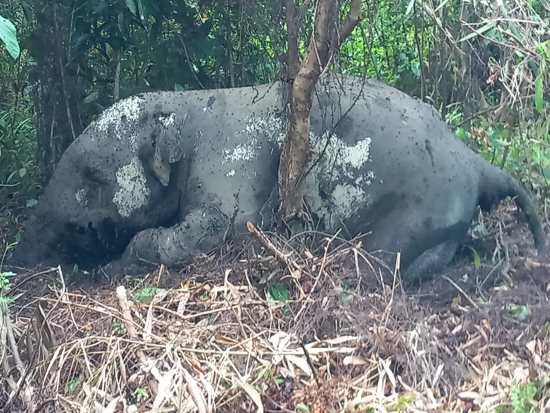মারা যাওয়া হাতিটি গোপনে পুতে ফেলা হল