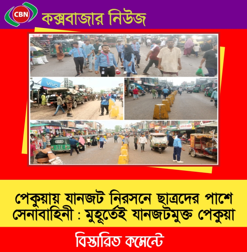 তারই ধারাবাহিকতায় আজ বুধবার (৭ই আগস্ট) দুপুর থেকে পেকুয়া আলহাজ কবির আহমদ চৌধুরি বাজার ও চৌমুহনী এলাকাকে যানজটমুক্ত করতে দুইটি টিমে ভাগ হয়ে কাজে নেমে পড়ে ছাত্ররা। মুহূর্তেই চৌমুহনী ও পেকুয়া বাজারকে যানজটমুক্ত করে নেন তারা। এসময় তাদের সহযোগিতায় এগিয়ে এলেন সেনাবাহিনীর একটি টিম।