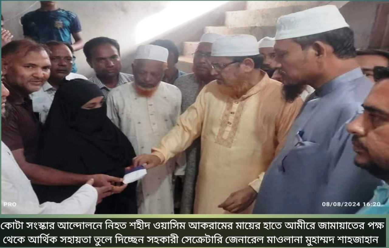 কোটা আন্দোলনে নিহত ওয়াসিমের পরিবারকে জামায়াতের আর্থিক সহায়তা