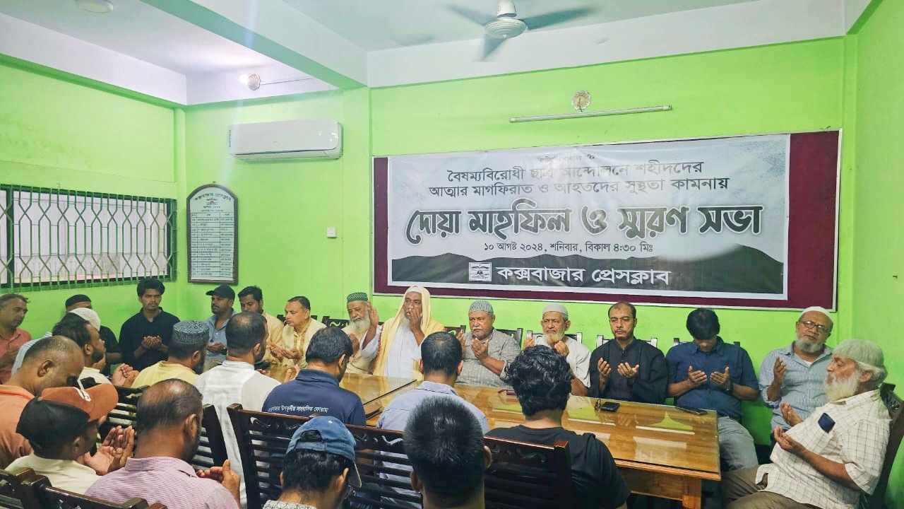 শনিবার (১০ আগষ্ট) বিকালে কক্সবাজার প্রেস ক্লাবে বৈষম্যবিরোধী ছাত্র আন্দোলনে শহীদদের আত্মার মাগফিরাত ও আহতদের সুস্থতা কামনায় দোয়া মাহফিল ও স্মরণ সভায় বক্তারা এসব কথা বলেছেন।