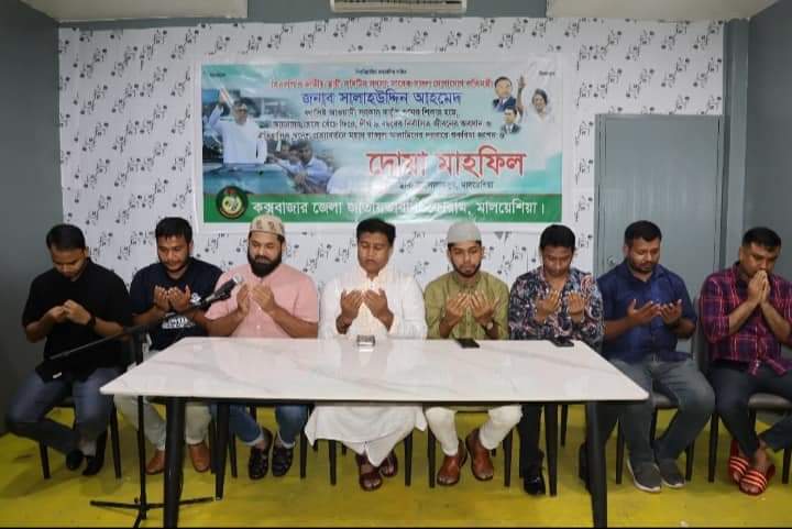 মালয়েশিয়ার কুয়ালালামপুর শহরের আভিজাত রেস্টুরেন্ট রাধুনি বিলাসের ভিআইপি হল রুমে ১২ আগস্ট স্থানীয় সময় রাত ৮ টায় মালয়েশিয়াস্থ কক্সবাজার জেলা জাতীয়তাবাদী ফোরামের উদ্যোগে সংগঠনের সভাপতি ইমন সাঈদের সভাপতিত্বে বিএনপির জাতীয় স্থায়ী কমিটির সদস্য সাবেক সফল যোগাযোগ প্রতিমন্ত্রী জনাব সালাহউদ্দিন আহমেদ রাজনৈতিক প্রতিহিংসায় ১০ মার্চ ২০১৫ ইং গুমের শিকার হয়ে আয়নাঘর থেকে ভারতের শিলং এ পাচারের মধ্যদিয়ে ১১ মে ২০১৫ইং বেঁচে ফিরে দীর্ঘ ৯ বছরের নির্বাসিত জীবনের অবসান ও ১১ আগস্ট ২০২৪ ইং ঐতিহাসিক স্বদেশ প্রত্যাবর্তনে মহান রাব্বুল আলামিনের দরবারে শুকরিয়া জ্ঞাপন ও দোয়া মাহফিলের আয়োজন করা হয়।