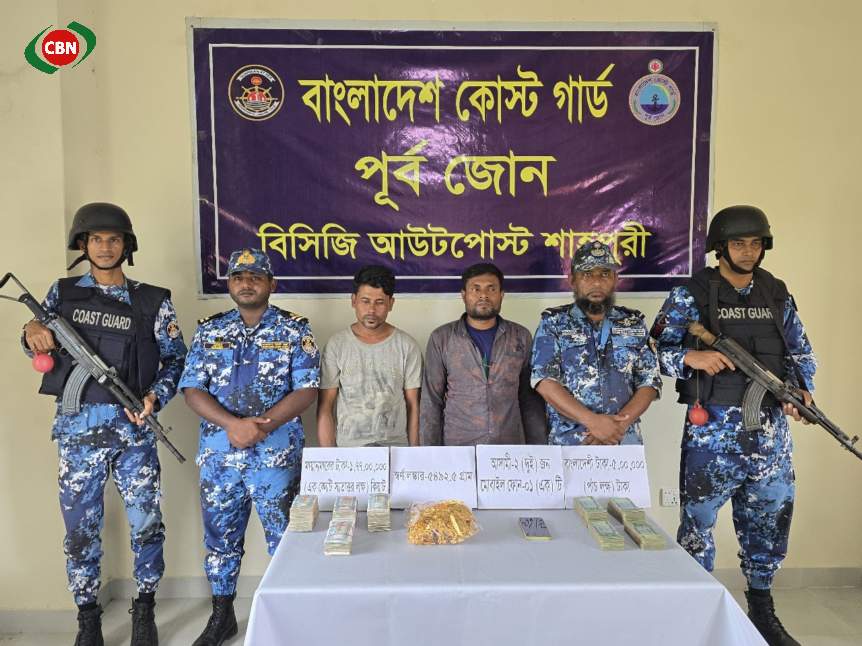 কক্সবাজারের টেকনাফ উপজেলার শাহপরীর দ্বীপে অভিযান চালিয়ে ৪৬০ ভরি স্বর্ণ, ১ কোটি ৭৭ লাখ মায়ানমার কিয়াট ও বাংলাদেশী মুদ্রার ৫ লাখ টাকাসহ দুই পাচারকারীকে আটক করেছে বাংলাদেশ কোস্ট গার্ড।