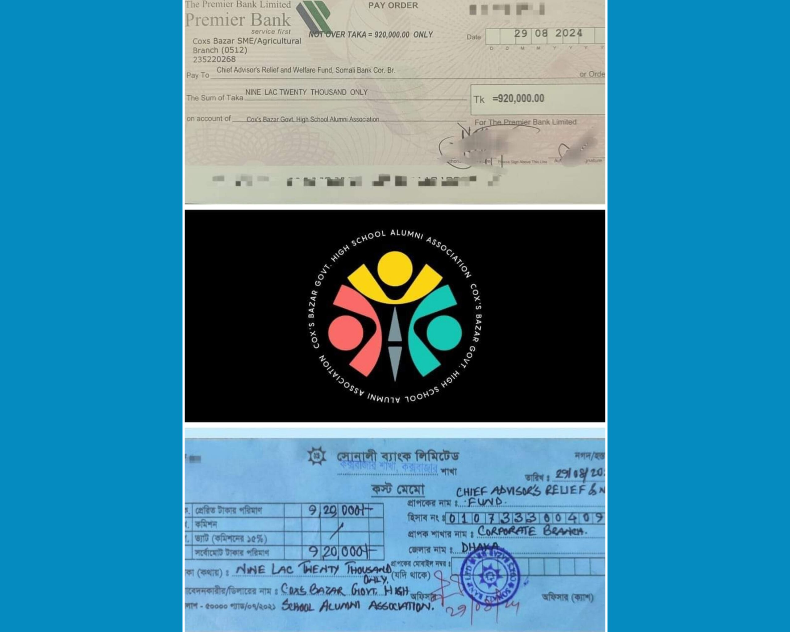 সাম্প্রতিক ভয়াবহ বন্যায় ক্ষতিগ্রস্তদের সহায়তায় প্রধান উপদেষ্টার ত্রাণ ও কল্যাণ তহবিলে ৯ লাখ ২০ হাজার টাকা অনুদান দিয়েছে কসউবি প্রাক্তন ছাত্র পরিষদ। এটি দক্ষিণ চট্টগ্রামের অন্যতম বড় ও ঐতিহ্যবাহী শিক্ষা প্রতিষ্ঠান কক্সবাজার সরকারি উচ্চ বিদ্যালয়ের (কসউবি) প্রাক্তন ছাত্রদের সংগঠন।