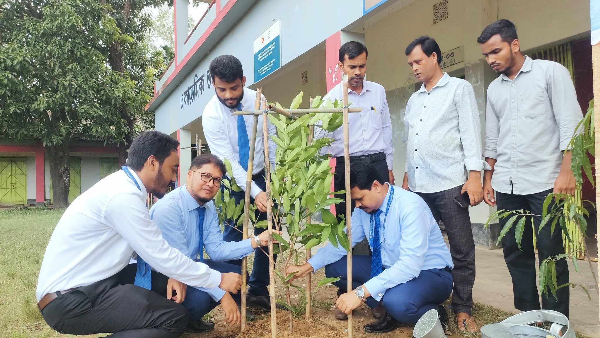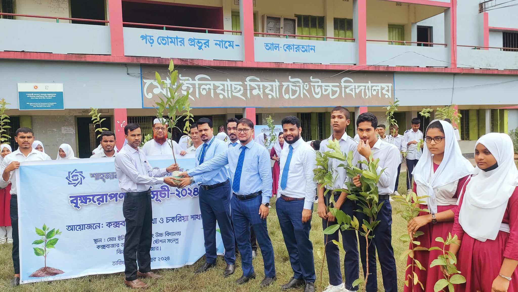 কক্সবাজার শাখা ব্যবস্থাপক মোহাম্মদ জানে আলম, চকরিয়া শাখা ব্যবস্থাপক মিজানুল করিম গাছের চারা রোপণ করে মহতি উদ্যোগে নিজেকে শামিল করেছেন।