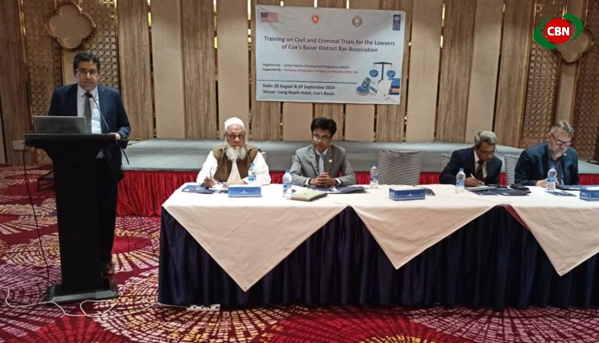 কক্সবাজারের জেলা ও দায়রা জজ মুনসী আব্দুল মজিদ এর সভাপতিত্বে অনুষ্ঠিত কেইস ম্যানেজম্যান্ট বিষয়ক এই প্রশিক্ষণ কোর্স আইনজীবীদের পেশার মানোন্নয়নে ও কক্সবাজার ও ভাসানচরে থাকা রোহিঙ্গা শরনার্থীদের বিভিন্ন আইনী জটিলতা সমাধানে অনেক সহায়ক হবে বলে রেজিস্ট্রার জেনারেল ড.আজিজ আহমদ ভূঞা তাঁর উদ্বোধনী বক্তব্যে উল্লেখ করেন। উদ্বোধনী অনুষ্ঠানে ইউএনডিপি’র কক্সবাজার অফিসের রিসার্চ এন্ড সার্ভে এনালাইসিস এর টেকনিক্যাল স্পেশালিষ্ট মাইকেল বন তেনজান পেইজ বক্তব্য রাখেন।