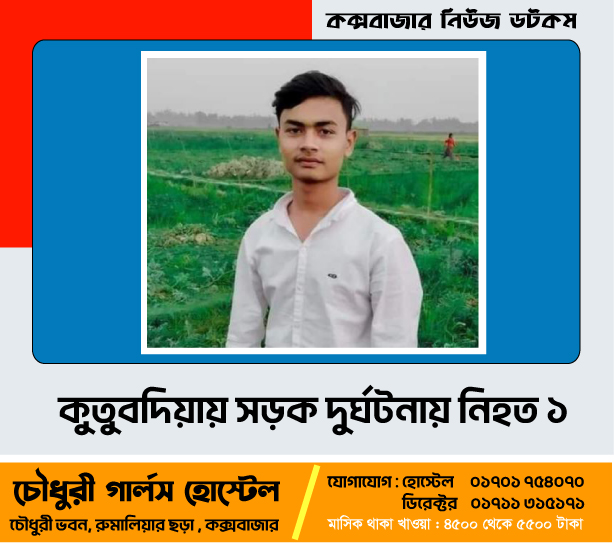 কুতুবদিয়ায় সড়ক দুর্ঘটনায় আরিফুল ইসলাম (১৮) নামের এক অটোরিকশা চালক নিহত হয়েছে। শুক্রবার উপজেলার বড়ঘোপ ইউনিয়নের উত্তর আমজাখালীর কৈবর্ত্য পাড়ায় এ দূর্ঘটনা ঘটে। নিহত আরিফুল ইসলাম ওই এলাকার বদরুদ্দোজার পুত্র।