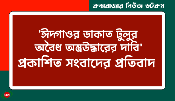 দৈনিক আমার সংবাদ পত্রিকায় “ঈদ্গাওর ডাকাত টুলুর অবৈধ অস্ত্রউদ্ধারের দাবি ” শিরোনামে প্রকাশিত সংবাদের প্রতিবাদ