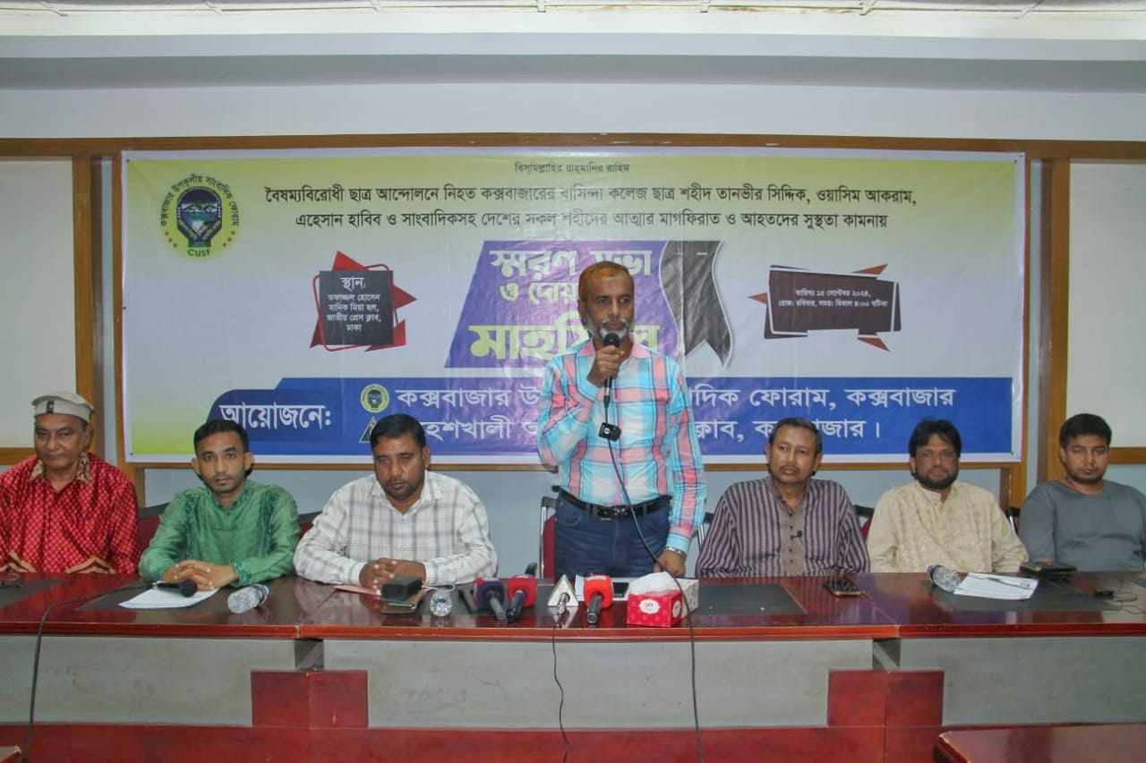স্বৈরাচার আওয়ামী লীগ বিরোধী ছাত্র আন্দোলনে শহীদদের স্মরণ সভা ও দোয়া মাহফিল কক্সবাজার উপকূলীয় সাংবাদিক ফোরাম।