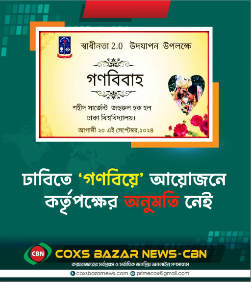 এতে বলা হয়, বিশ্ববিদ্যালয় কর্তৃপক্ষ কাউকে গণবিয়ে আয়োজনের অনুমোদন দেয়নি। তা ছাড়া কেউ আনুষ্ঠানিকভাবে এ বিষয়ে কর্তৃপক্ষকে জানায়নি।