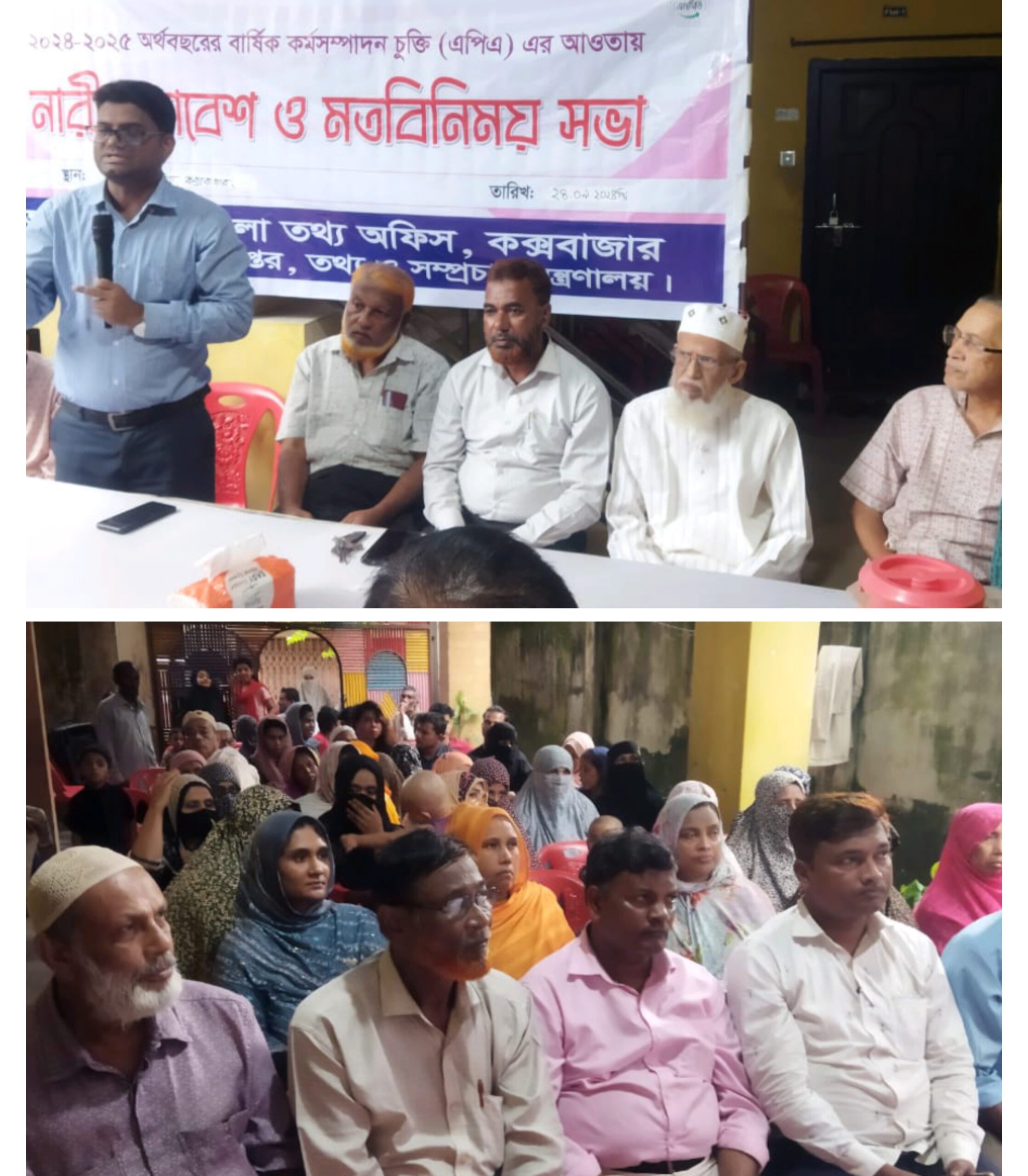 কক্সবাজার জেলা তথ্য অফিসের আয়োজনে ২০২৪-২০২৫ অর্থবছরের বার্ষিক কর্মসম্পাদন চুক্তি (এপিএ) এর আওতায় চকরিয়া উপজেলা সদরে নারী সমাবেশ ও মতবিনিময় সভা অনুষ্ঠিত হয়েছে।