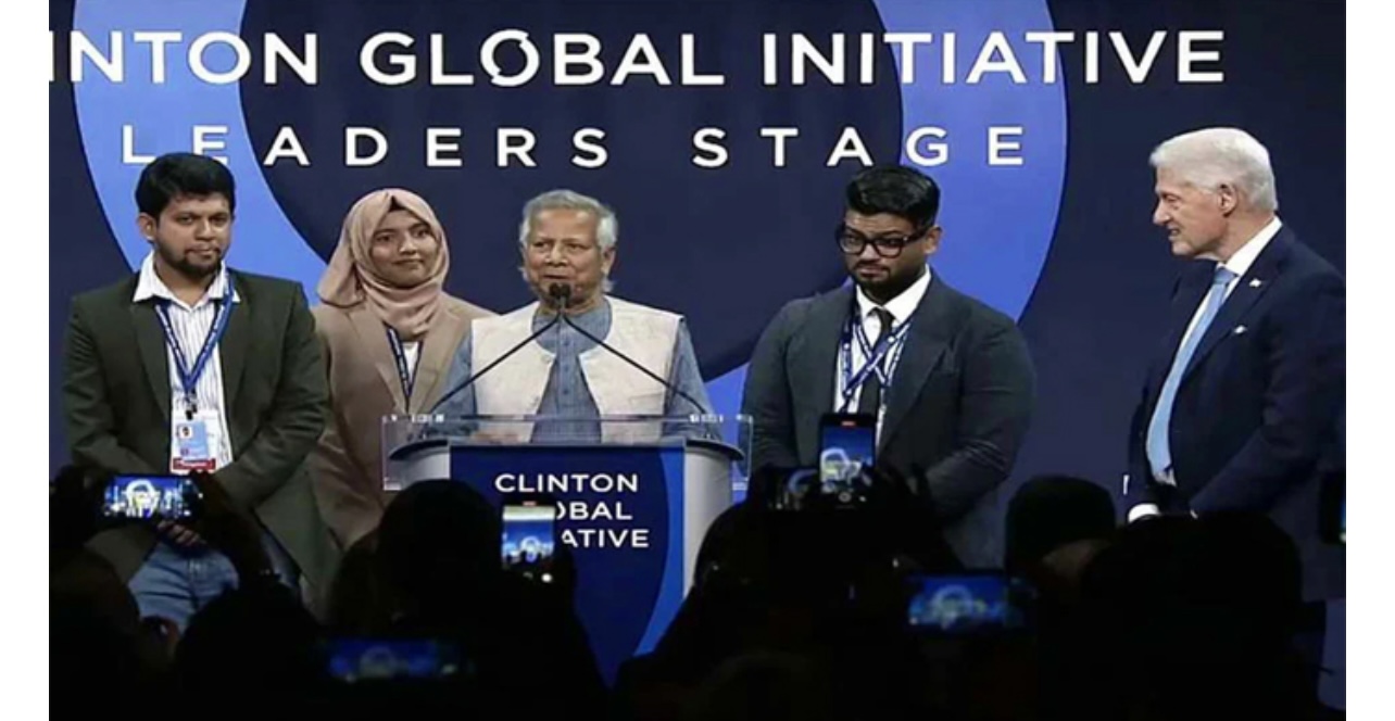 ক্লিনটন গ্লোবাল ইনিশিয়েটিভ লিডারস স্টেজে ড. ইউনূস বাংলাদেশের ছাত্র আন্দোলনের নানা বিষয় নিয়ে কথা বলেন। কীভাবে আওয়ামী লীগ সরকার ছাত্র জনতার ওপর গুলি চালিয়ে হত্যাকাণ্ড ঘটিয়েছে, ছাত্ররাও গুলির সামনে কীভাবে বুক পেতে দাঁড়িয়েছে, সেই গল্প বলেন তিনি। এক পর্যায়ে বাংলাদেশ নিয়ে কথা বলা শুরু করেন। এ সময় তিনি দর্শকদের জানান, এখানে ছাত্র আন্দোলনের তিনজন প্রতিনিধি রয়েছেন।