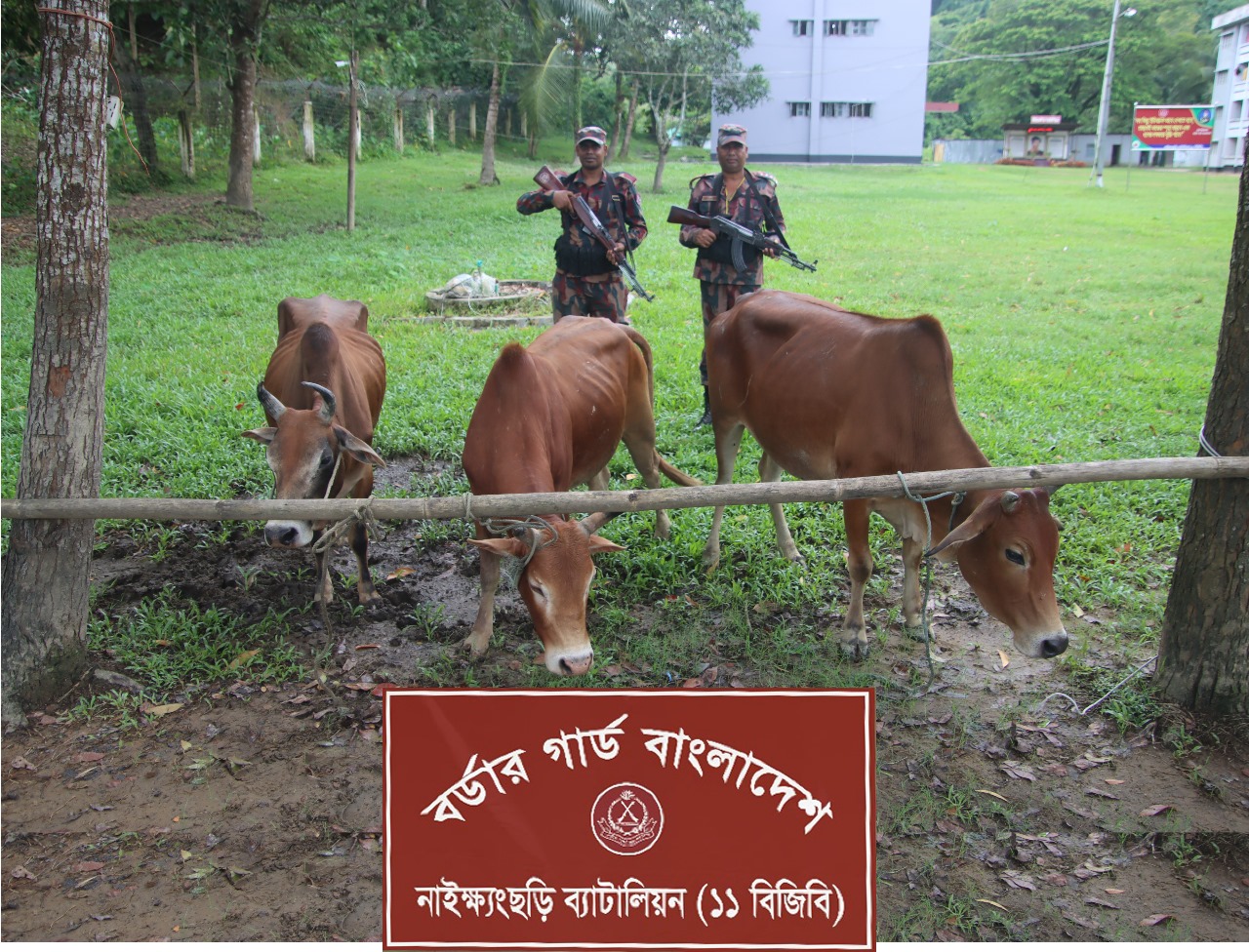 জানা যায়, সীমান্ত দিয়ে অসাধু চোরাকারবারিরা সরকারি রাজস্ব ফাঁকি দিয়ে মিয়ানমার থেকে গরু নাইক্ষ্যংছড়ি সীমান্ত এলাকার ভিতরে নিয়ে আসে। উল্লেখ্য, নাইক্ষ্যংছড়ি ১১ বিজিবির নিয়ন্ত্রণাধীন কয়েকটি সীমান্ত পয়েন্ট দিয়ে সীমান্ত এলাকার চোরাকারবারিরা প্রতিদিন শত শত গরু,মহিষ মিয়ানমার থেকে নাইক্ষ্যংছড়ি সীমান্ত পারি দিয়ে পার্শ্ববর্তী উপজেলাসহ বিভিন্ন জায়গা দিয়ে গর্জনিয়া ও চাকঢালার হাটে নিয়ে বিক্রি করে। এই গরু মহিষ,ইয়াবা পাচাররোধ করার জন্য বিজিবির অভিযান আরো জোরদার করার দাবি জানিয়েছেন সচেতন মহল।