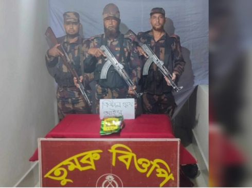 মঙ্গলবার (১ অক্টোবর) ভোরে নাইক্ষ্যংছড়ি উপজেলার ঘুমধুমে অবস্থিত কক্সবাজার ৩৪ বিজিবির দায়িত্ব পূর্ণ এলাকায় তুমব্রু বিওপির বিশেষ টহল দল বিওপি থেকে উওর-পশ্চিমে বাংলাদেশ-মায়ানমার সীমান্তের ঘুমধুম ইউনিয়নের তুমব্রুর চিকন পাতা বাগানের পাহাড়ে বিশেষ অভিযান চালিয়ে মালিক বিহীন ১কেজি ক্রিস্টাল মেথ আইস উদ্ধার করতে সক্ষম হন।