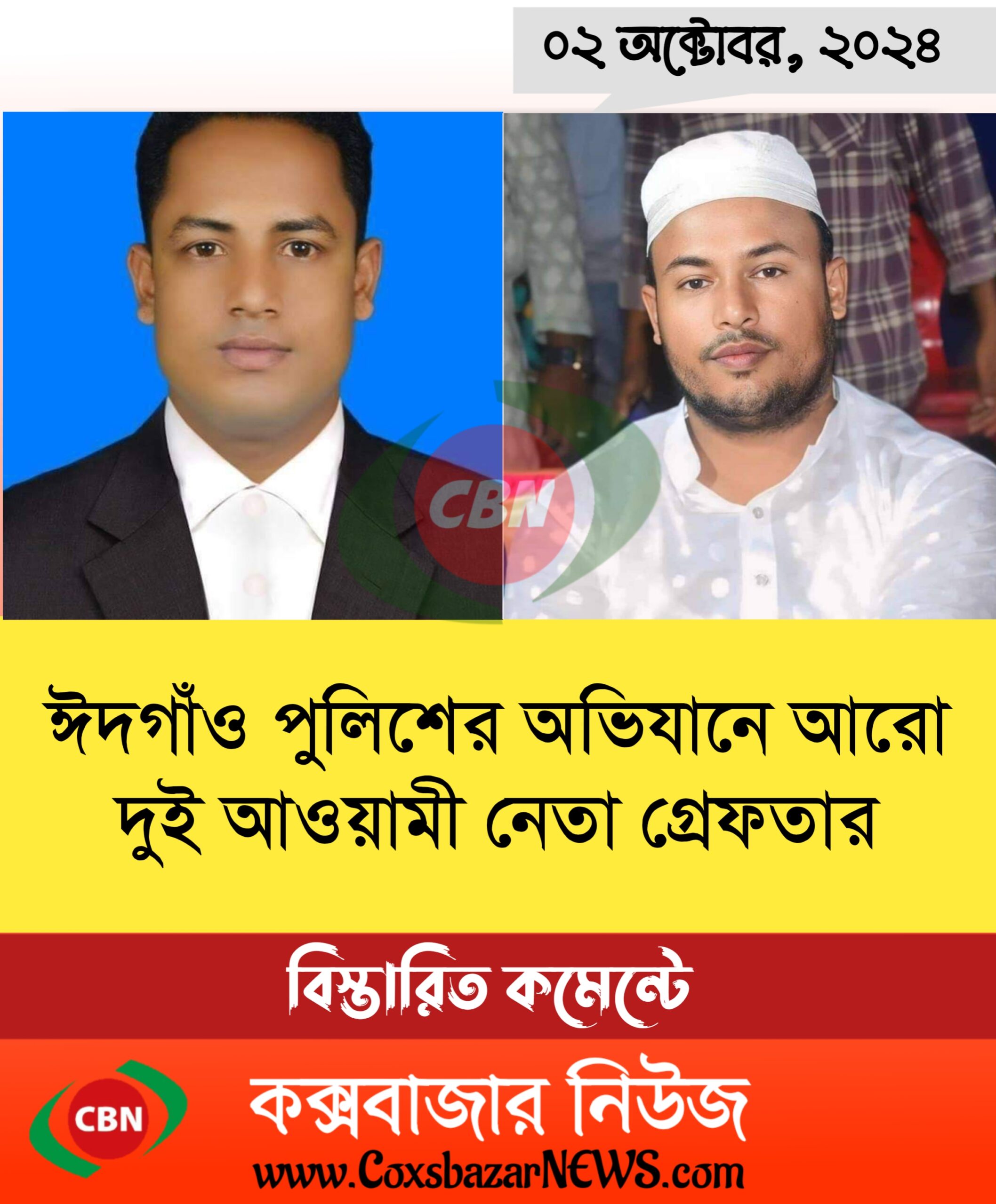 কক্সবাজারের ঈদগাঁও থানা পুলিশের অভিযানে আরো দুই আওয়ামী নেতা গ্রেফতার হয়েছে ।