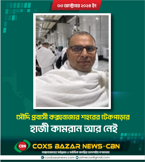 সিবিএন: কক্সবাজার শহরের টেকপাড়ার বাসিন্দা হাজী মোহাম্মদ কামরান আর েনই । (ইন্নালিল্লাহে…রাজেউন)। তিনি গতকাল ২ অক্টোবর সকালে হার্ট এট্যাকে একটি হাসপাতলে চিকিৎসাধীন অবস্থায় মৃত্যুবরণ করেন। হাজী মোহাম্মদ কামরান টেকপাড়ার মরহুম আব্দুল দাইয়ান এর পুত্র। তিনি ২০০০ সাল থেকে সৌদিআরবে কর্মরত।