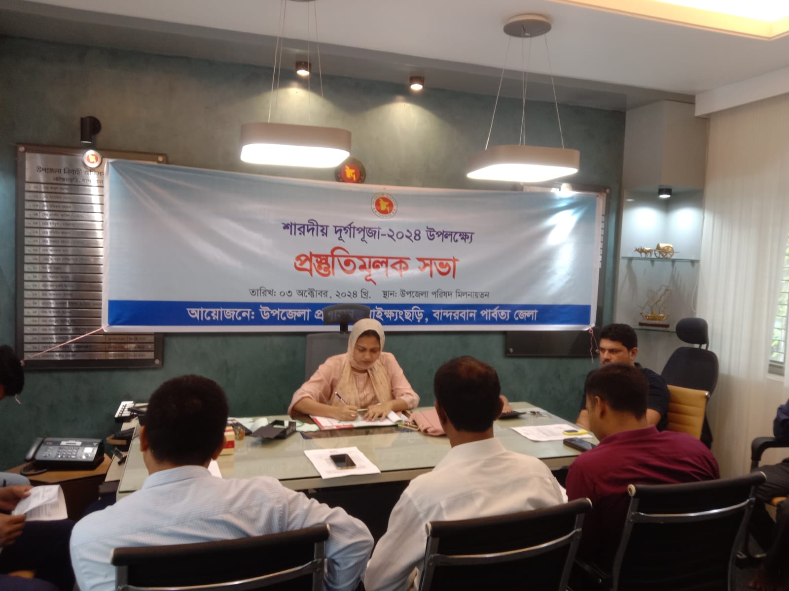 বান্দরবান পার্বত্য জেলার নাইক্ষ্যংছড়ি উপজেলায় আসন্ন শারদীয় দুর্গাপূজা উদযাপন উপলক্ষ্যে উপজেলা প্রশাসনের আয়োজনে প্রস্তুতিমূলক সভা অনুষ্ঠিত হয়েছে।