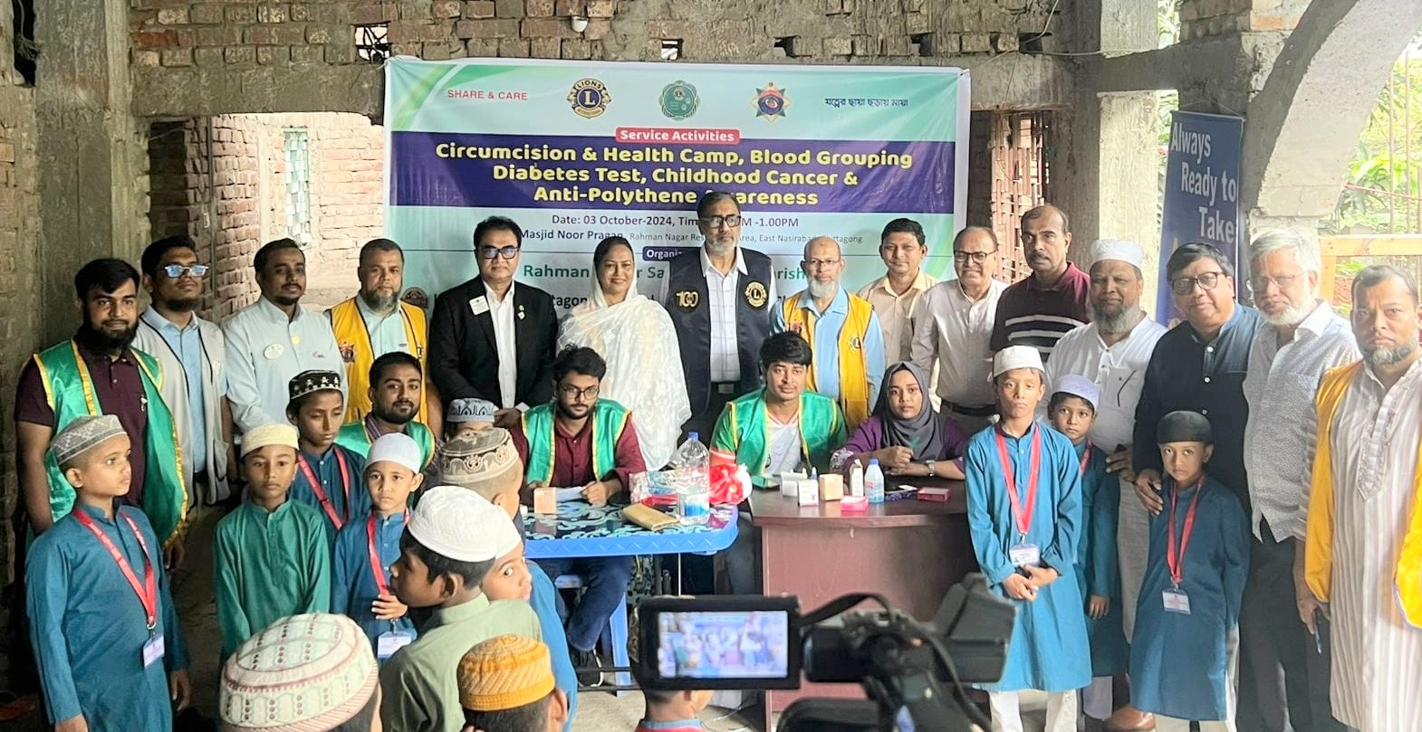 অক্টোবর লায়ন্স সেবা মাস ২০২৪ উপলক্ষ্যে আন্তর্জাতিক সেবা সংগঠন লায়ন্স ইন্টারন্যাশনালের অন্যতম শ্রেষ্ঠ জেলা লায়ন্স জেলা ৩১৫ বি ৪ বাংলাদেশের অন্যতম ক্লাব লায়ন্স ক্লাব অব চিটাগাং ইম্পেরিয়াল সিটি, লায়ন্স ক্লাব অব চিটাগং অ্যালেক্স, লিও ক্লাব অব চিটাগং ইম্পেরিয়াল সিটি ও রহমাননগর সমাজকল্যাণ পরিষদের উদ্যোগে বিনামূল্যে সুন্নাতে খতনা, ব্লাড গ্রুপ নির্ণয়, ডায়াবেটিস টেস্ট, ফ্রি মেডিকেল ক্যাম্প, পলিথিন ও ক্যান্সার বিষয়ে সচেতনতামূলক প্রোগ্রাম নগরীর রহমান নগর আবাসিক এলাকার মসজিদ-ই-নূরে ০৩ অক্টোবর বৃহস্পতিবার অনুষ্ঠিত হয়।