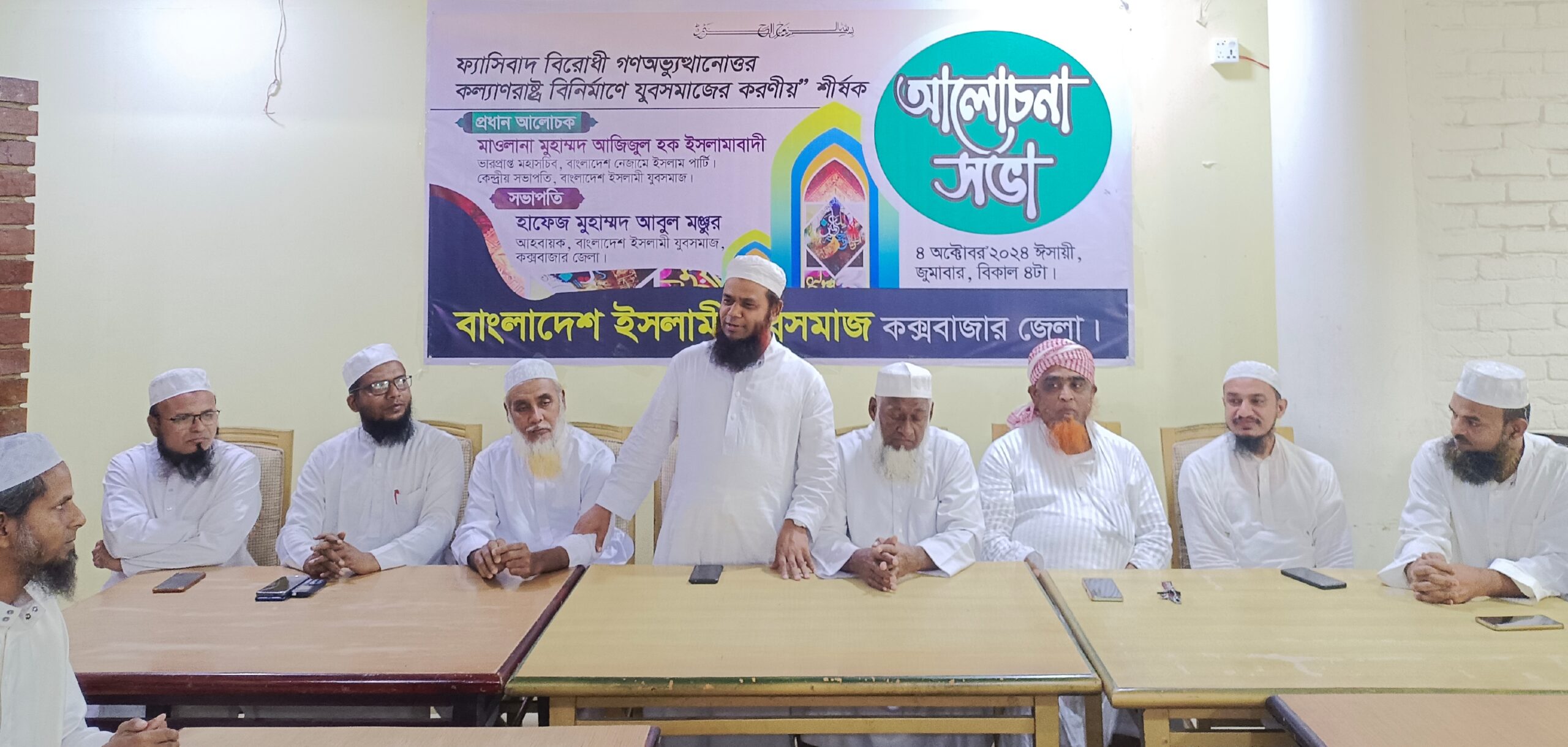 তিনি বাংলাদেশ ইসলামী যুবসমাজ কক্সবাজার জেলা শাখা আয়োজিত “ফ্যাসিবাদ বিরোধী গণ অভ্যুত্থানোত্তর কল্যাণ রাষ্ট্র বিনির্মাণে যুবসমাজের করণীয়” শীর্ষক আলোচনা সভায় প্রধান আলোচকের বক্তব্যে এ কথা বলেন।