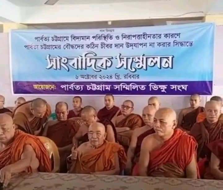 পার্বত্য চট্টগ্রামের বিদ্যমান পরিস্থিতি ও নিরাপত্তাহীনতার শঙ্কায় এ বছর তিন পার্বত্য (রাঙামাটি, খাগড়াছড়ি, বান্দরবান) জেলায় বৌদ্ধ সম্প্রদায়ের কঠিন চীবর দানোৎসব উদযাপন না করার সিদ্ধান্ত নিয়েছে পার্বত্য চট্টগ্রাম সম্মিলিত ভিক্ষু সংঘ।