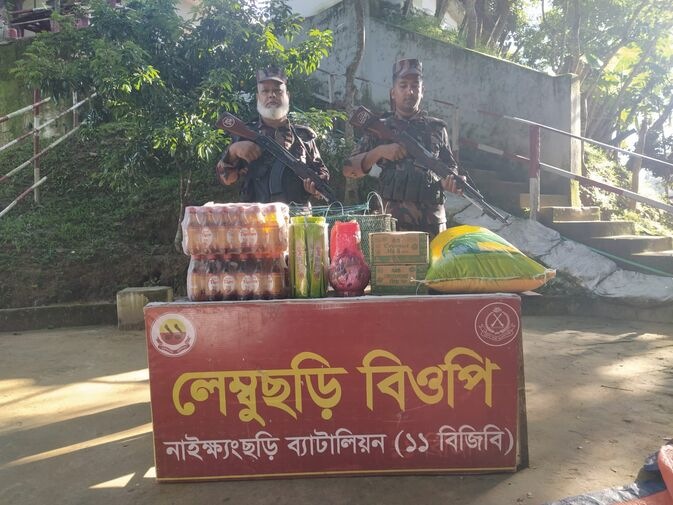 বান্দরবান পার্বত্য জেলার নাইক্ষ্যংছড়ি উপজেলার মায়ানমার সীমান্তের দৌছড়ি ইউনিয়নের ১১ বিজিবির অধীন লেমুছড়ির বালুরমাঠ নামক স্থান থেকে অবৈধ ভাবে মিয়ানমারে পাচারকালে বিজিবি বিস্কুট, চাউল, কোমল পানীয়, ইঁদুর মারার ফাঁদ, লাভ ক্যান্ডি, ফ্রেশ ওয়েফার সহ বিভিন্ন পণ্য সামগ্রী উদ্ধার করেছে।