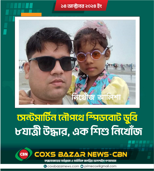 নিখোঁজ শিশু হলেন,উপজেলার সেন্টমার্টিন ইউনিয়নের পূর্ব পাড়ার বাসিন্দা সাদ্দাম হোসেনের মেয়ে নুর আলিশা(৮)।