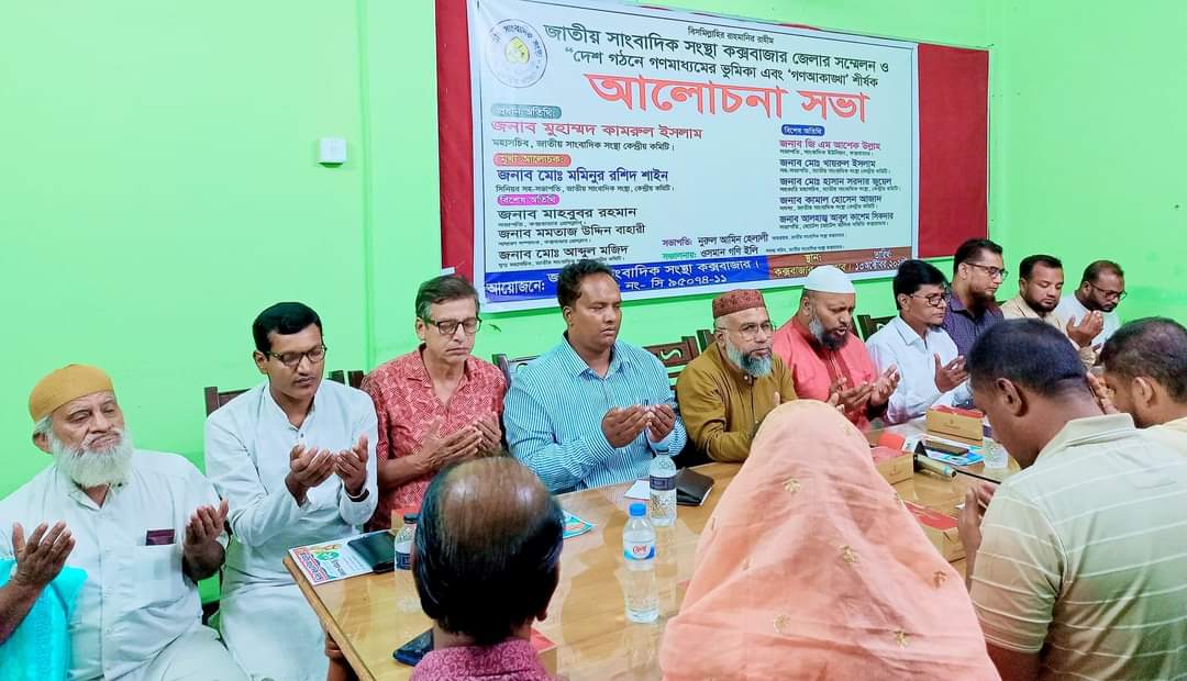 জাতীয় সাংবাদিক সংস্থা কক্সবাজার জেলা কমিটির সম্মেলন ও দেশ গঠনে গণমাধ্যমের ভূমিকা এবং” গণআকাঙ্খা” শীর্ষক আলোচনা সভা ও দোয়া মাহফিল কক্সবাজার প্রেসক্লাব মিলনায়তনে সম্পন্ন হয়েছে।