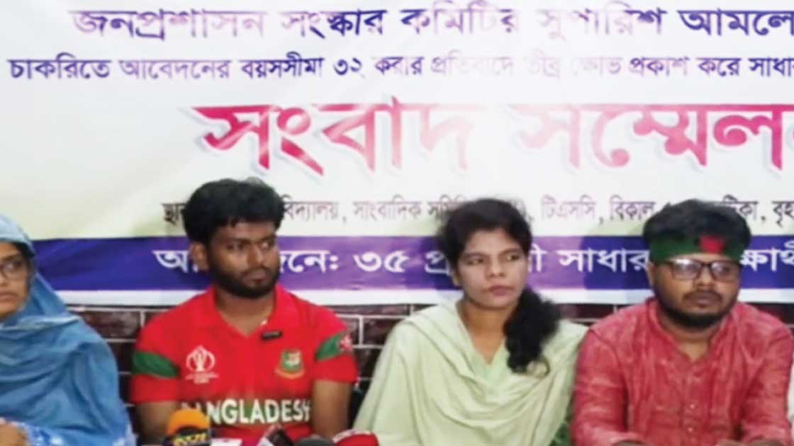 বৃহস্পতিবার (২৪ অক্টোবর) বিকেলে ঢাকা বিশ্ববিদ্যালয়ের টিএসসিতে “জনপ্রশাসন সংস্কার কমিটির সুপারিশ আমলে না নিয়ে চাকরিতে আবেদনের বয়সসীমা ৩২ করার প্রতিবাদ” শিরোনামে এক সংবাদ সম্মেলনে শিক্ষার্থীরা এই দাবি জানান।