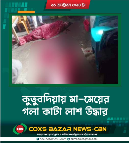 কক্সবাজারের কুতুবদিয়ায় দিনে-দুপুরে ব্যবসায়ীর স্ত্রী ও মেয়ের গলা কাটা লাশ উদ্ধার করেছে যৌথবাহিনী।