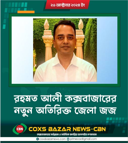 কক্সবাজারের নতুন অতিরিক্ত জেলা ও দায়রা জজ হিসাবে নিয়োগ পাওয়া বিচারক মোহাম্মদ রহমত আলী বর্তমানে আইন, বিচার ও সংসদ বিষয়ক মন্ত্রনালয়ের আইন ও বিচার বিভাগের উপসচিব (অতিরিক্ত জেলা ও দায়রা জজ) পদে কর্মরত রয়েছেন। কুমিল্লা জেলার বাসিন্দা বিচারক মোহাম্মদ রহমত আলী বাংলাদেশ জুডিসিয়াল সার্ভিস কমিশন (বিজেএসসি) তৃতীয় ব্যাচের একজন কর্মকর্তা।