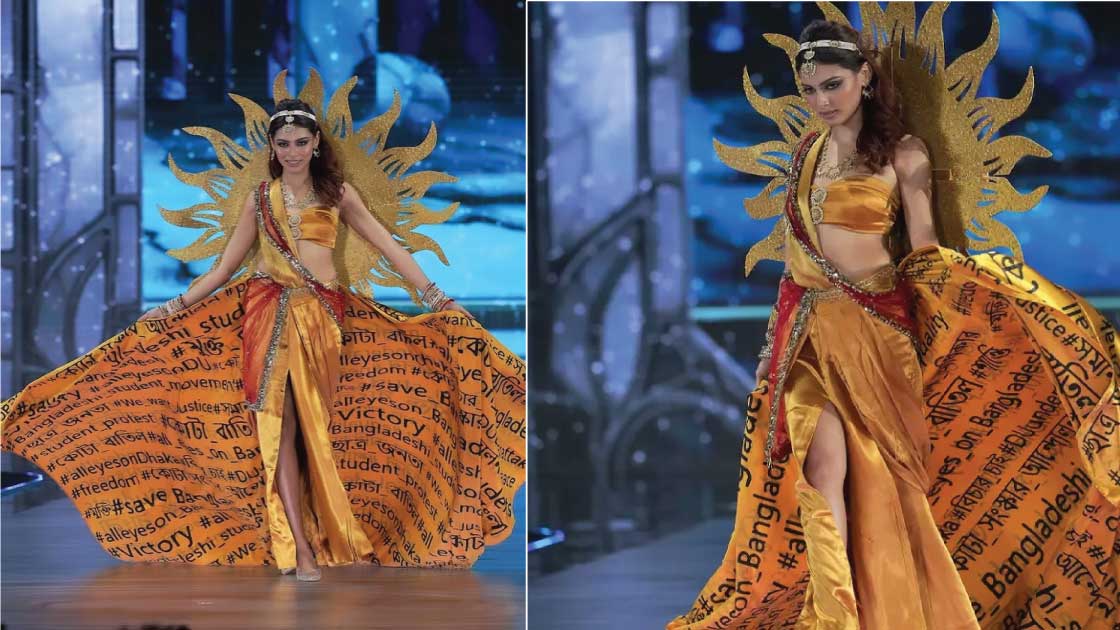 বাংলাদেশে সাম্প্রতিক ছাত্র ও গণ আন্দোলন আন্তর্জাতিকভাবে ব্যাপক আলোচিত হয়, যার প্রভাব দেখা যায় জেসিয়ার উপস্থাপনায়ও। জেসিয়া প্রতিযোগিতার মঞ্চে তুলে ধরেন বাংলাদেশের এই আন্দোলন। ছাত্ররা যেভাবে পথে নেমে প্রতিবাদ করেছে, সেই বার্তা ফুটিয়ে তুলতে তিনি পোশাক হিসেবে বেছে নিয়েছেন সর্ষে রঙের শাড়ি, যেখানে কালো রঙে ছাপানো ছিল আন্দোলন সংশ্লিষ্ট হ্যাশট্যাগগুলো, যেমন: ‘#কোটা_আন্দোলন’, ‘#মুক্তি’, ‘#শান্তি’, ‘#freedom’, ‘#peace’, ‘#Victory’, ইত্যাদি। সোনালী পাড় আর কমলা আঁচল দিয়ে সাজানো সেই শাড়ির পিঠে একটি সোনালি সূর্য, যা দেশের নতুন সূচনার প্রতীক।