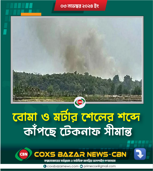 মিয়ানমারের সরকারি বাহিনী ও বিদ্রোহী গোষ্ঠী আরাকান আর্মির মধ্যে সংঘর্ষ চলছে। যার বোমা ও মর্টারশেলের শব্দে কাঁপছে টেকনাফ সীমান্ত। রাতে এই বিকট শব্দে সীমান্তবাসীর মধ্যে আতঙ্ক ছড়িয়েছে।