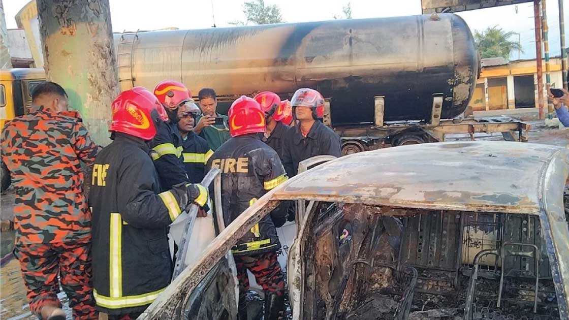 প্রত্যক্ষদর্শীরা জানান, বিস্ফোরণের পর মুহূর্তেই আগুন ছড়িয়ে পড়ে এবং সাতটি যানবাহন পুড়ে যায়। ফায়ার সার্ভিসের সাতটি ইউনিট দুই ঘণ্টার চেষ্টায় আগুন নিয়ন্ত্রণে আনে।