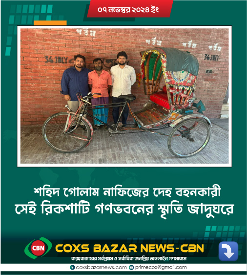 বৈষম্যবিরোধী আন্দোলনে শহিদ গোলাম নাফিজের দেহ বহনকারী রিকশাটি জুলাই গণঅভ্যুত্থান স্মৃতি জাদুঘরে স্মৃতিচিহ্ন হিসাবে রাখা হবে। বৃহস্পতিবার (৭ই নভেম্বর) গণভবনে নাফিজের দেহ বহনকারী রিকশাটি দেখতে এসে ডাক, টেলিযোগাযোগ ও তথ্যপ্রযুক্তি মন্ত্রণালয় এবং তথ্য ও সম্প্রচার মন্ত্রণালয়ের উপদেষ্টা মোঃ নাহিদ ইসলাম একথা বলেন।