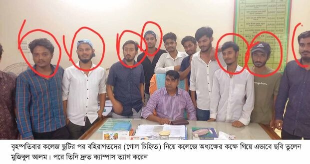 কলেজের শিক্ষার্থীরা জানান- মুজিবুল আলমের কলেজে যোগদান করাতে একটি চক্র রহস্যজনক কারণে উঠেপড়ে লেগেছে। চক্রটি বহিরাগত লোকজন দিয়ে কলেজ ক্যাম্পাসে আতঙ্ক সৃষ্টির মাধ্যমে সাধারণ শিক্ষার্থীদের জিম্মি করে জোরপূর্বক মুজিবুল আলমকে কলেজে ফিরিয়ে আনার অপচেষ্টা চালাচ্ছে।